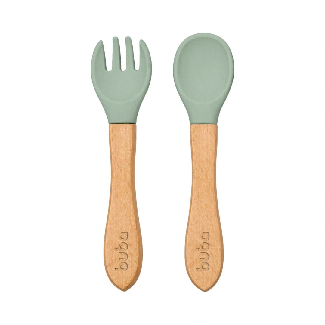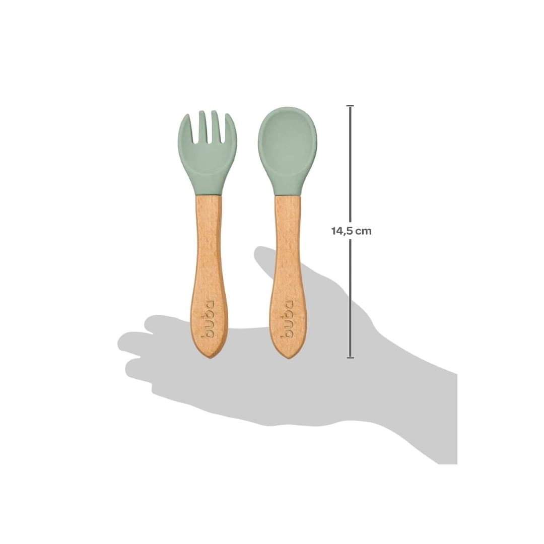 Fabricado em silicone e bambu, materiais não comuns em talheres convencionais O material de silicone é especificamente mencionado para ser gentil com as gengivas do bebê, e o cabo de bambu é leve. Essas características diferenciam o produto de talheres convencionais, tornando-os recursos especiais