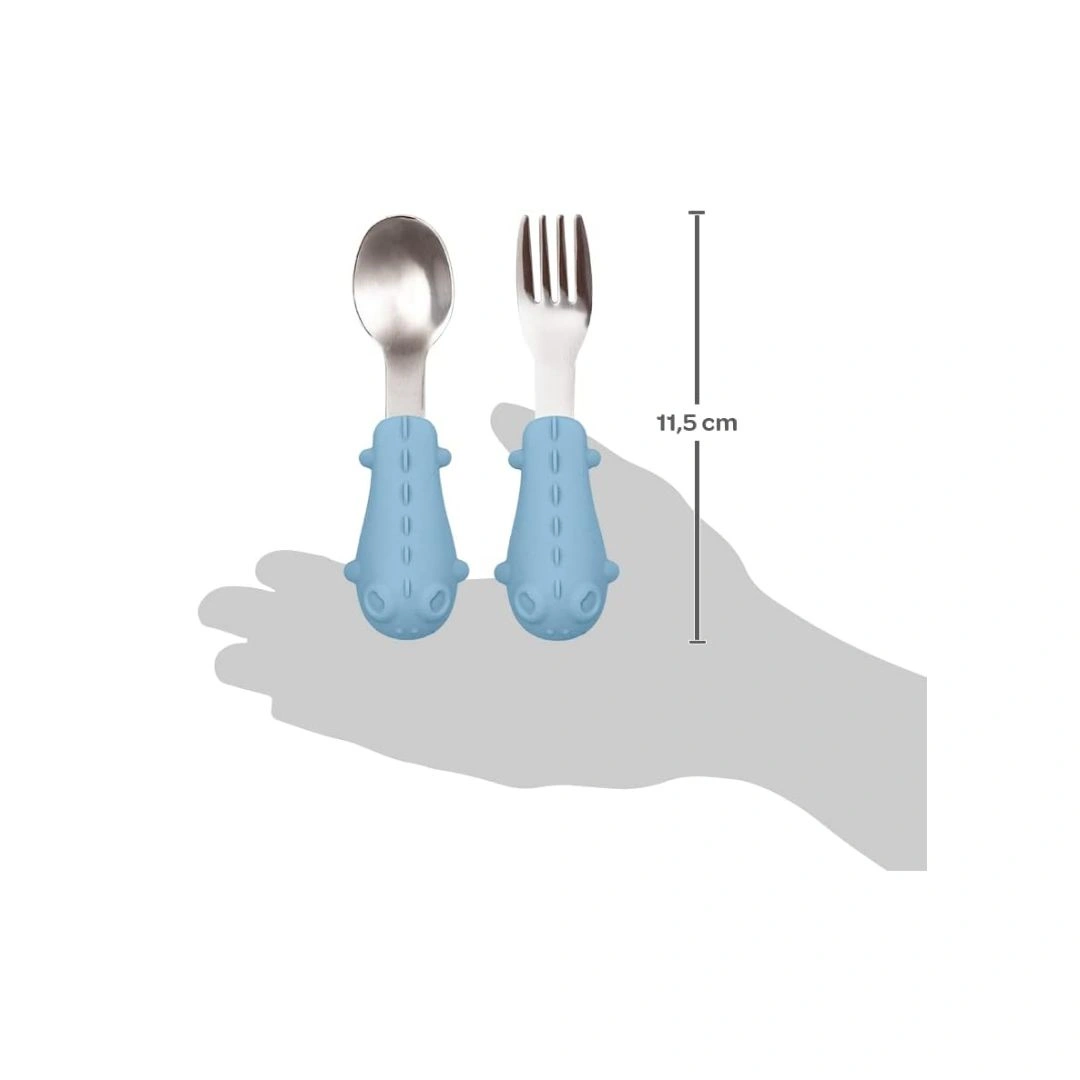 O Kit Talheres da Buba é super-resistente e higiênico Possui um garfo e uma colher com cabo macio em silicone e personagem divertido Ideais para atrair a atenção na hora da papinha Os pequenos vão amar!