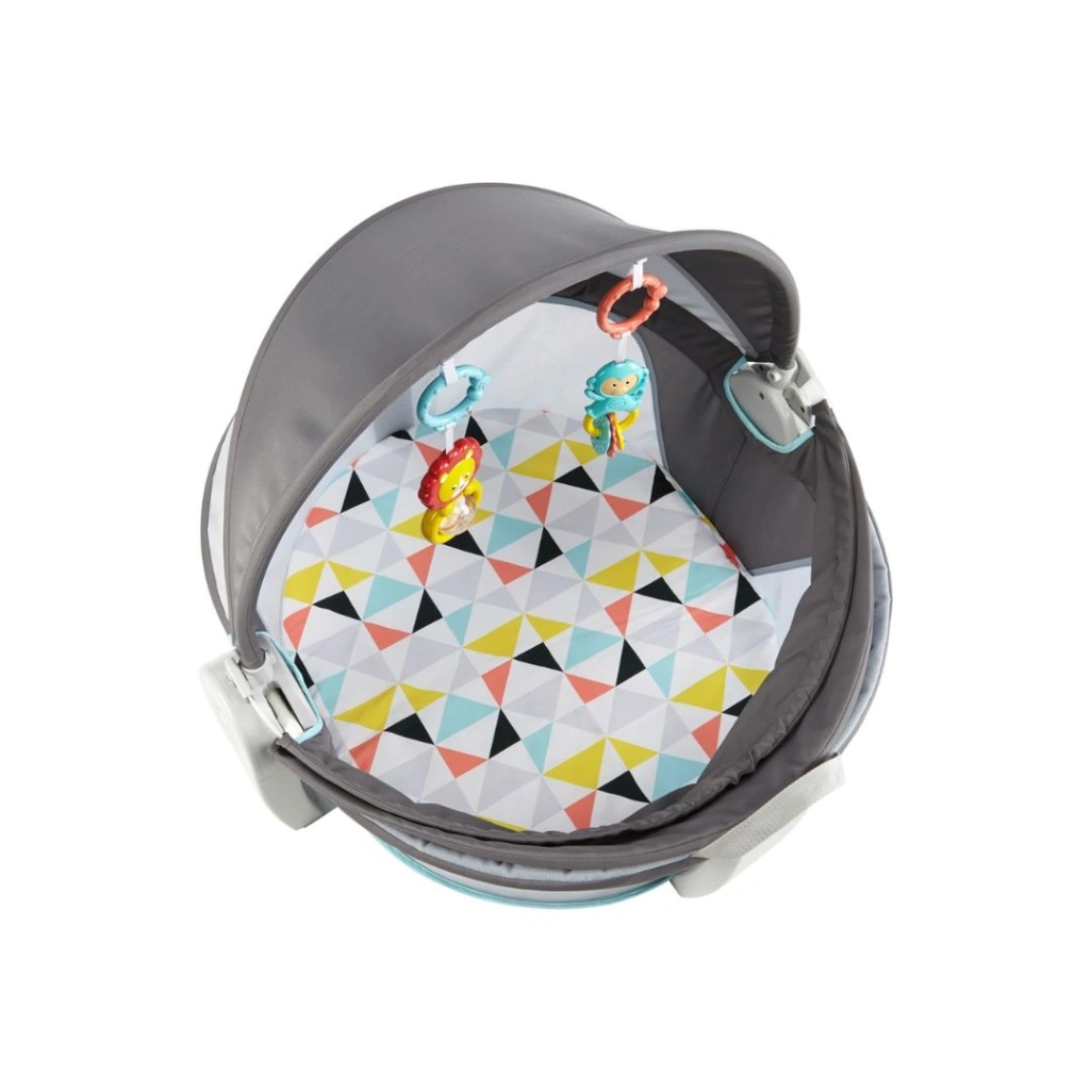 Berço portátil 2 em 1 e espaço para brincar, perfeito para uso em casa, ao ar livre ou durante viagens Pode ser usado em ambientes internos ou externos: o dossel ajustável protege seu bebê dos raios solares (UPF 20) e insetos 2 brinquedos de bebê removíveis para brincadeiras envolventes Dobra plana com alças para facilitar o transporte Tapete limpo e lençol lavável na máquina