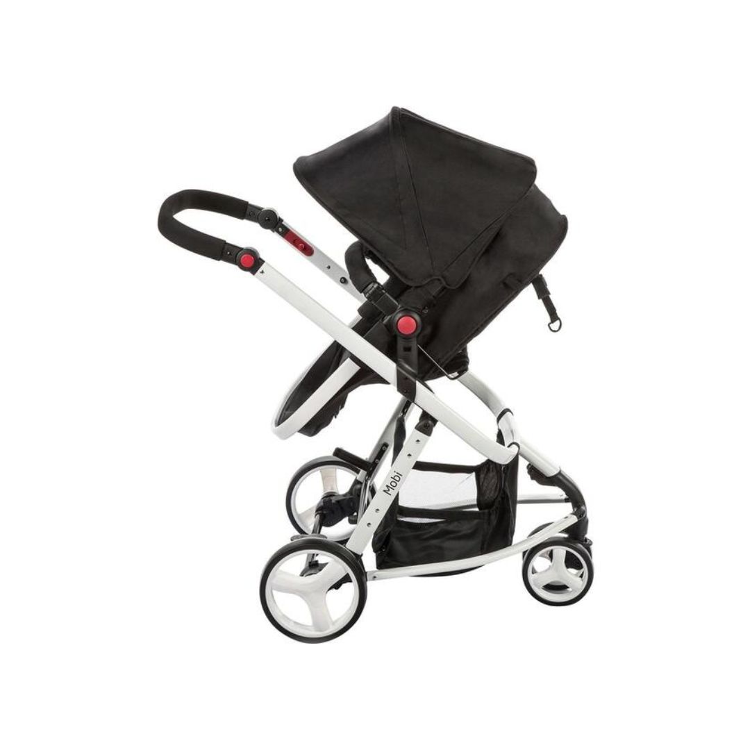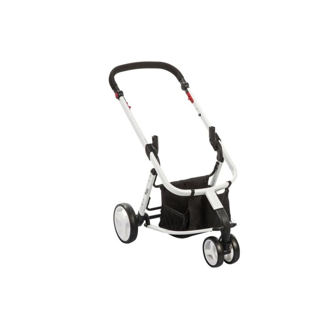 O carrinho tem estrutura de alumínio Assento reversível que se transforma em moisés Reclinável em 4 posições, encosto ajustável em múltiplas posições, manopla ajustável em altura, 3 rodas largas para mais conforto Roda dianteira dupla e rodas traseiras grandes, freio centralizado, giro 360° com trava de movimento na roda dianteira, amplo cesto de compras com capacidade de até 5kg Cinto de segurança de 5 pontos com protetores acolchoados, ajustáveis em altura e largura Capota retrátil, removível e com proteção solar UV50+