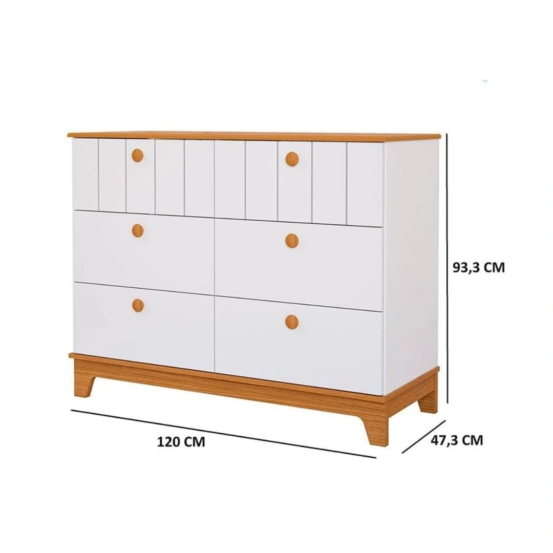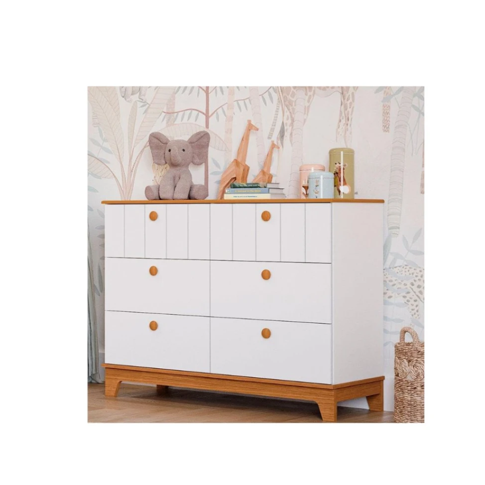 Para as mamães que valorizam design diferenciado e segurança para seus bebês, a Cômoda Biscoito é a escolha certa: um móvel 100% MDF, com pintura atóxica e acabamento em laca, perfeito para o quartinho do seu pequeno Com 6 gavetas espaçosas, puxadores em madeira maciça e detalhes em baixo relevo, essa cômoda une estilo e funcionalidade Além disso, pensando no conforto e praticidade no dia a dia, possui espaço para trocador e gavetas corrediças telescópicas que garantem abertura total das gavetas E para sua tranquilidade, o Kit Anti tombamento oferece segurança extra, pois evita que a cômoda caia para frente.