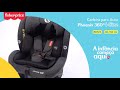 A Cadeira Phoenix 360º é um dispositivo de retenção infantil desenvolvido seguindo a norma i-Size (R129), que representa a mais avançada tecnologia de segurança para cadeiras automotivas Diferente da classificação tradicional, que se baseia apenas no peso, a i-Size utiliza a altura da criança como critério principal para definir a compatibilidade com o dispositivo. Isso permite uma adaptação mais precisa e progressiva ao crescimento infantil, além de reduzir erros na instalação, pois todas as cadeiras i-Size utilizam o sistema ISOFIX Certificada pela norma i-Size para crianças com estatura a partir de 40cm até 150cm, isto é, de recém-nascidos até aproximadamente 12 anos de idade. Equipado com top tether na base, que permite giro 360° livre de amarrações e clipes magnéticos laterais que seguram as linguetas do cinto de segurança ao colocar e retirar a criança do assento, garantindo praticidade real i-Size 40cm até 150cm Sistema de fixação ISOFIX + Top Tether Sistema de proteção contra impactos laterais Rotação 360º livre de amarrações Clipe magnético lateral que facilita a colocação e retirada da criança do assento 4 posições de recline, sendo 1 na posição contra movimento e 3 na posição a favor do movimento 17 opções de ajuste do encosto de cabeça Ajuste automático do cinto de segurança de 5 pontos Completamente coberta por capa lavável Estofado e redutores super acolchoados e macios