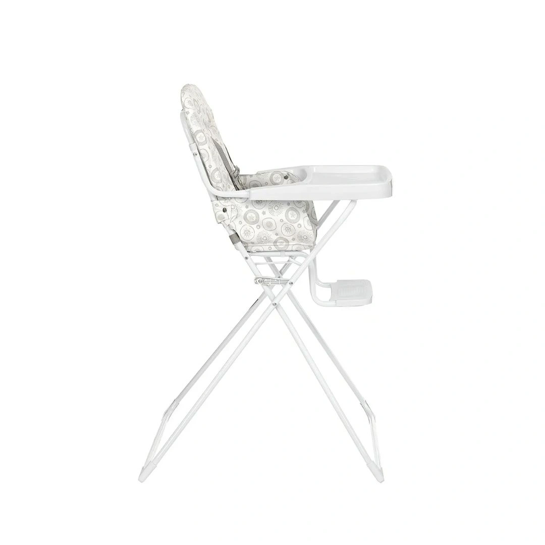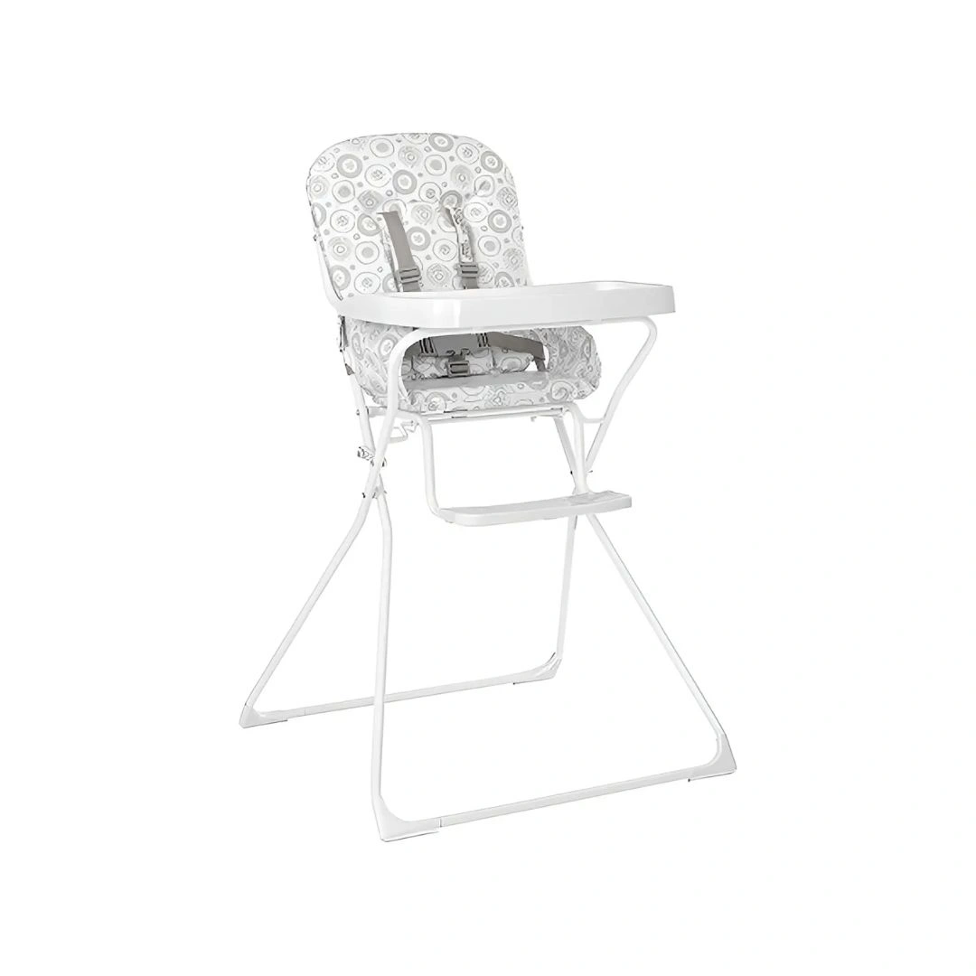 Assento em plástico resistente e fácil de limpar Cinto de segurança de 5 pontos ajustável 5 posições de altura para adaptar ao crescimento Peso máximo suportado de 15 kg Estrutura leve e compacta, fácil de transportar Bandeja removível para conveniência nas refeições