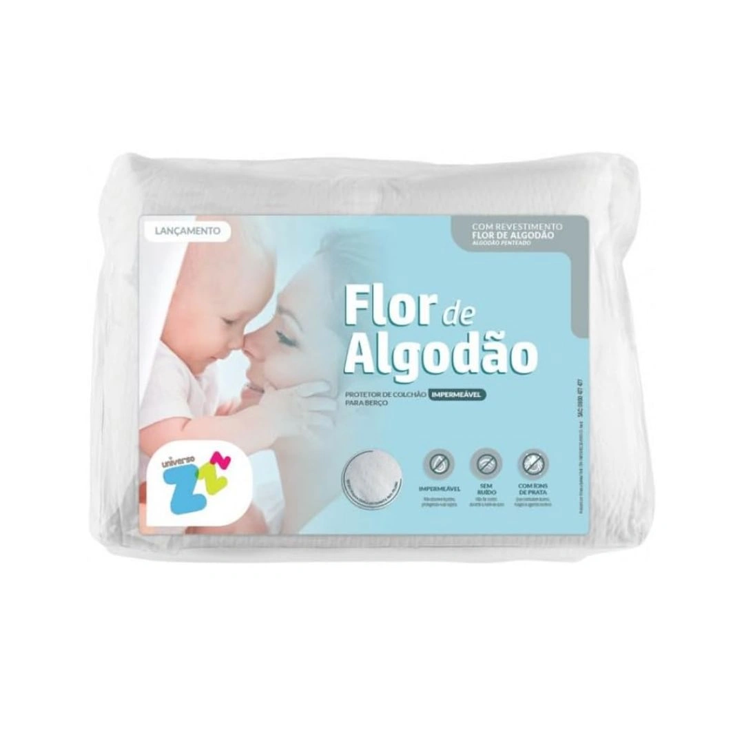 O protetor de colchão impermeável Flor de Algodão para berço Fibrasca é a proteção ideal para o local do soninho do bebê Feito em tecido matelassado, sua composição é constituída de três camadas: 1ª camada, o tecido superior, produzido em malha dupla, sendo a face superior em algodão, a qual proporcionará o toque macio e confortável, e a face inferior em poliéster, o qual ajuda a dar resistência ao tecido e o torna mais volumoso. A 2ª camada fica ao meio e é feita em manta de fibra siliconada, a qual proporciona extra conforto, tornando este protetor ainda mais aconchegante. A 3ª camada é composta pelo revestimento impermeável que não deixa passar líquidos, protegendo o colchão. Este protetor de colchão possui também slip com elastano (tecido que abraça toda a lateral do colchão) que proporciona ótima fixação ao colchão. A parte superior é feita em malha exclusiva jacquard Flor de Algodão Fibrasca que traz conforto e maciez ao toque. Possui nanotecnologia, que protege de fungos, ácaros e bactérias. Mais segurança e proteção para o bebê
