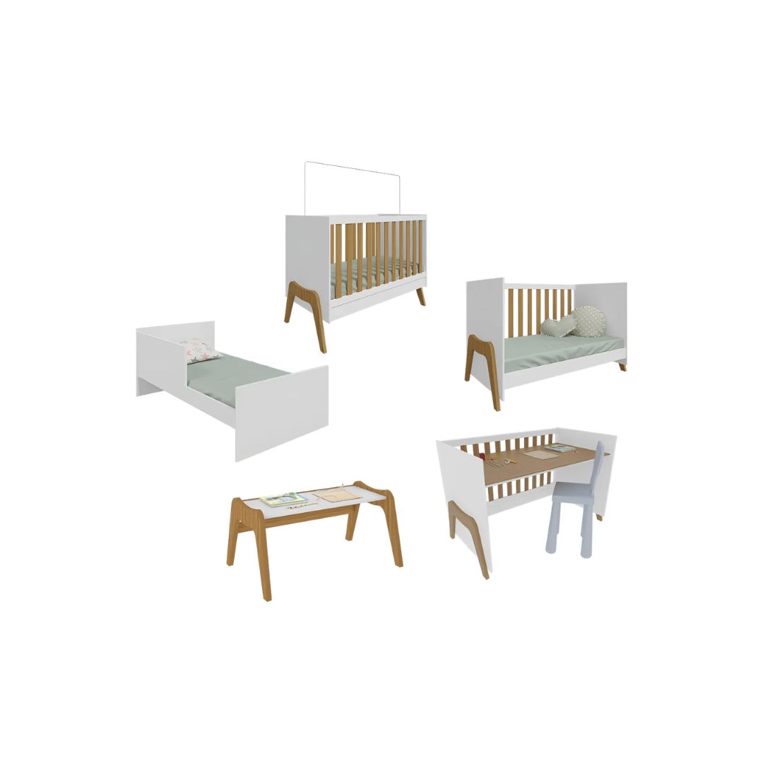 Berço Padrão Americano Fabricado em MDF Bordas Laqueadas Pés em MDF Pode ser transformado em mini cama Medidas: 1.30 x 76 x 104 Colchão vendido separadamente