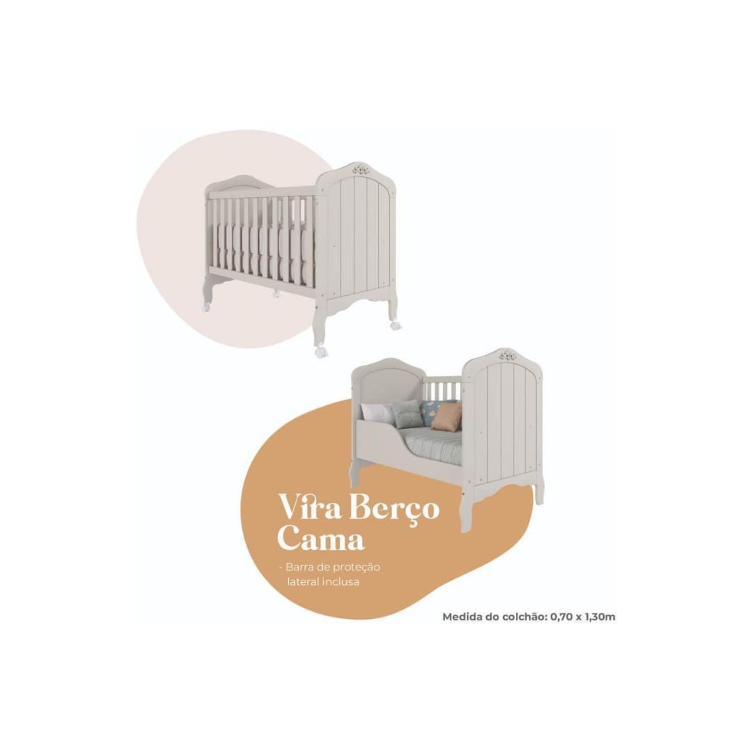 O Berço Harmonia é fabricado em 100% de MDF e com certificação de segurança, garantindo que cada detalhe é produzido dentro das normas mais rigorosas para tranquilidade dos pequenos E sabe o que é ainda mais incrível? Utiliza TINTAS ATÓXICAS, sempre pensando na saúde e segurança dos bebês Além disso, conta com estrado de 2 regulagens de altura, 2 rodízios com trava e 2 sem trava para facilitar a movimentação, 2 grades fixas para segurança, e até varão mosquiteiro incluso para noites mais tranquilas E quando o bebê crescer, ele se transforma em mini cama, com barra de proteção lateral inclusa Colchão vendido separadamente