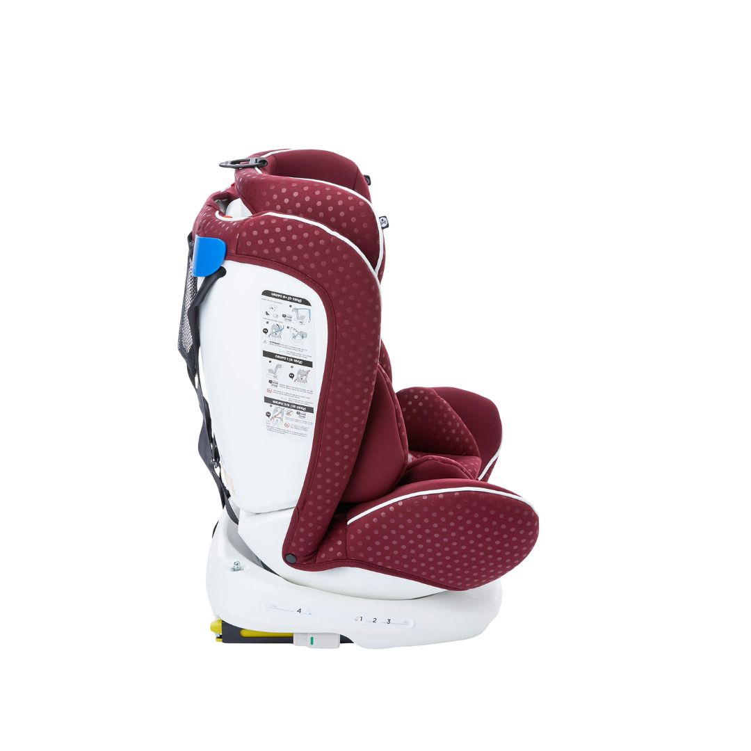 Rotação 360°, permite colocar e tirar as crianças com mais segurança Proteção lateral, contra impactos fornece maior segurança para a cabeça, corpo e quadris. Encosto de cabeça ajustável, com 7 posições que acompanham o crescimento da criança 4 posições de reclínio, ativadas com apenas uma mão, para maior conforto das crianças Cinto de 5 pontos, 3 posições de altura mantém o bebê confortável e seguro
