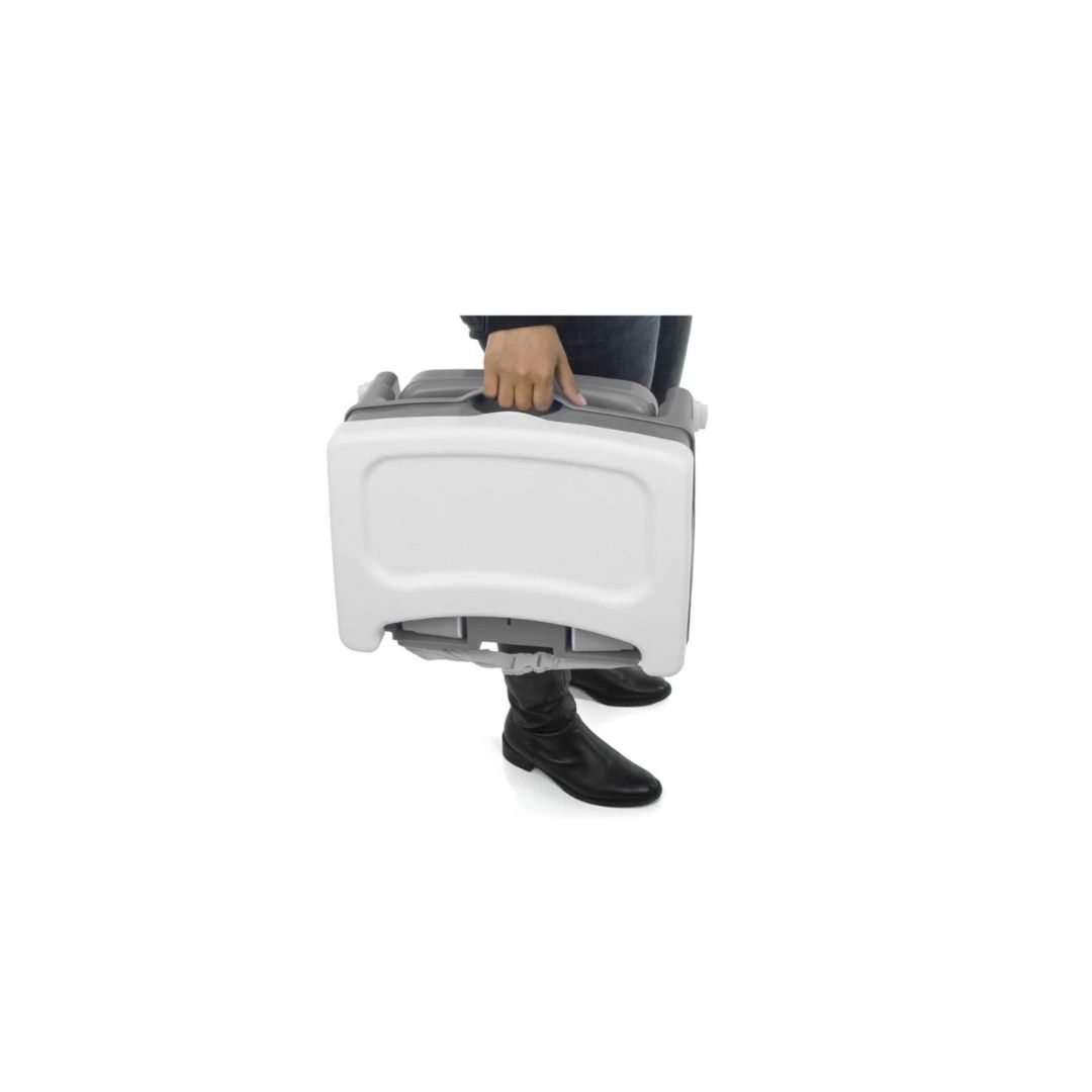 2 Posições de Altura Cintos de segurança para o bebê Tiras com retrator, para fixar nas cadeiras Bandeja removível Tampa com porta objetos Fechamento compacto Suporta at 23 kg