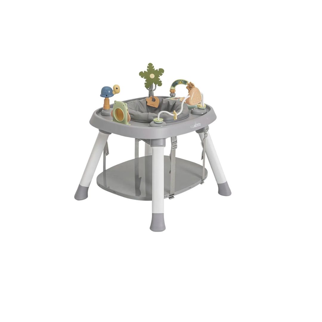 8 funções diferentes em um único produto Prática montagem das peças Bandeja de refeição removível e ajustável em 3 graduações Cinto de segurança de 5 pontos Estofado removível Amplo assento e encosto Cesto porta-objetos Centro de atividades com assento giratório, plataforma para apoio dos pés e 5 diferentes brinquedos para interação e desenvolvimento da criança, sendo 1 deles um brinquedo musical Opções da cadeira com ou sem bandeja e banquinho para serem utilizados de forma avulsa mesa com tampo liso para ser utilizada em conjunto com as versões avulsas da cadeira e banquinho Mesa com tampo apropriado para brincar com blocos de montar Prática banqueta alta Cadeira portátil de refeição e assento de elevação que podem ser instalados em vários tipos de cadeiras Cadeira alta e cadeira portátil: 6 meses até 15 kg Centro de atividades: 4 meses até 12kg Demais funções: 3 anos até 23 kg