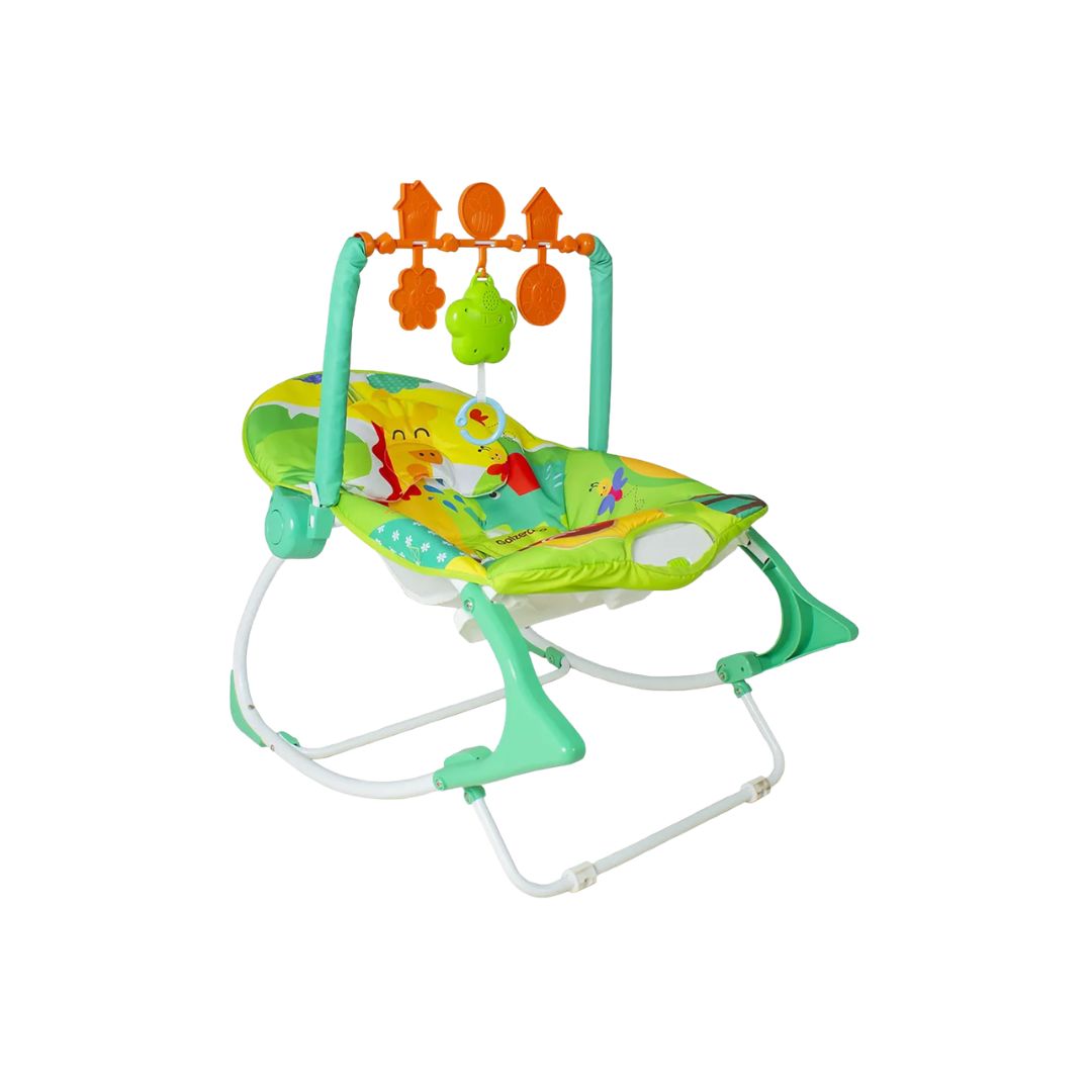 Cadeira de descanso ideal para crianças de até 18 kg Cinto de segurança de 3 pontos Assento e encosto acolchoado, macio e de fácil higienização Protetor de barriga Vibração suave para o sono do bebê Mobile removível com 3 brinquedos Mobile musical Duas posições do encosto Função balanço com travamento