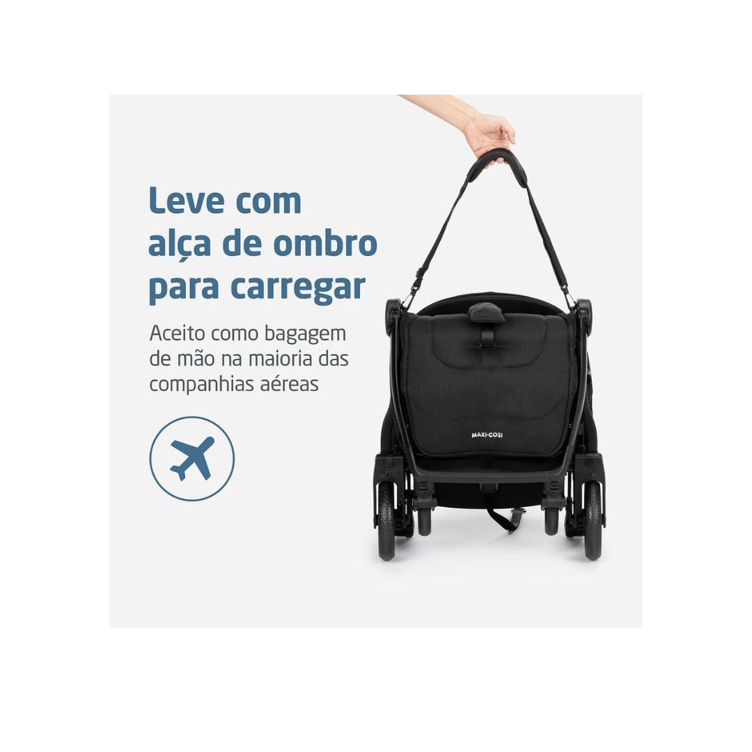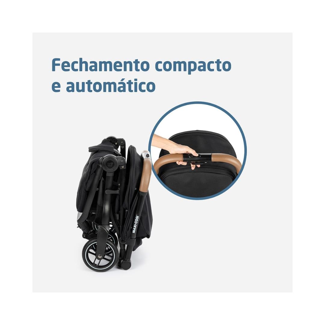 Capota retrátil Encosto regulável em multiposições Fechamento com uma mão Protetor frontal removível Fechamento compacto e muito leve para transportar Para bebês de ate 15 kg Cesto 3 kg